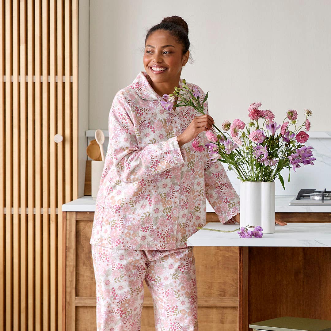 Get super warm and snuggly with the Alexa Flannelette Pyjama Set. Crafted from soft bushed cotton, these pink pyjamas feature vintage-inspired florals for a cosy yet elegant look. Perfect for sleeping soundly through the cooler months.
