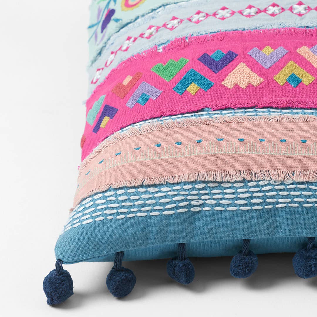 Inspired by the colourful patterns and folk art of South America, the Fiesta quilt cover is a playful celebration of tradition for the contemporary home. Depicted using hand painted watercolours, whimsical llamas play hide and seek amongst a lively collection of plant and floral motifs. A decorative geometric border frames this eclectic design, while the reverse tile print acts as a calming complement to an otherwise bold statement piece. The coordinating cushions offer a final touch of style to complete this striking look.