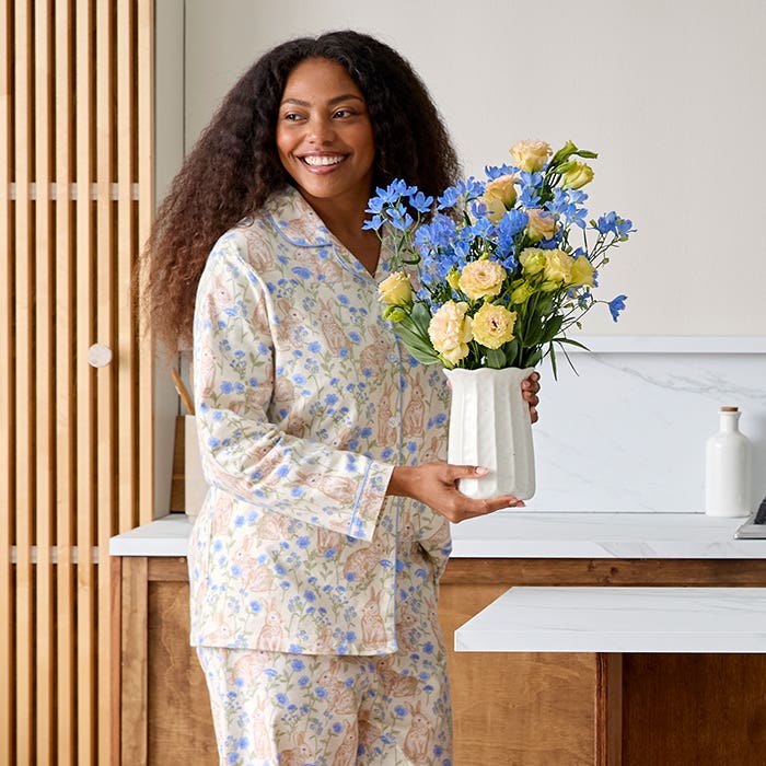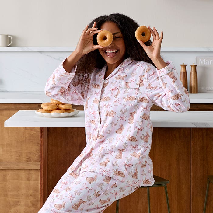 Not every Easter gift has to be chocolate! On top of being a treat for yourself, our Easter pyjamas make the perfect Easter gift. Featuring playful bunnies and soft pastel shades, this sleepwear range includes pyjamas, slippers and adorable robes.