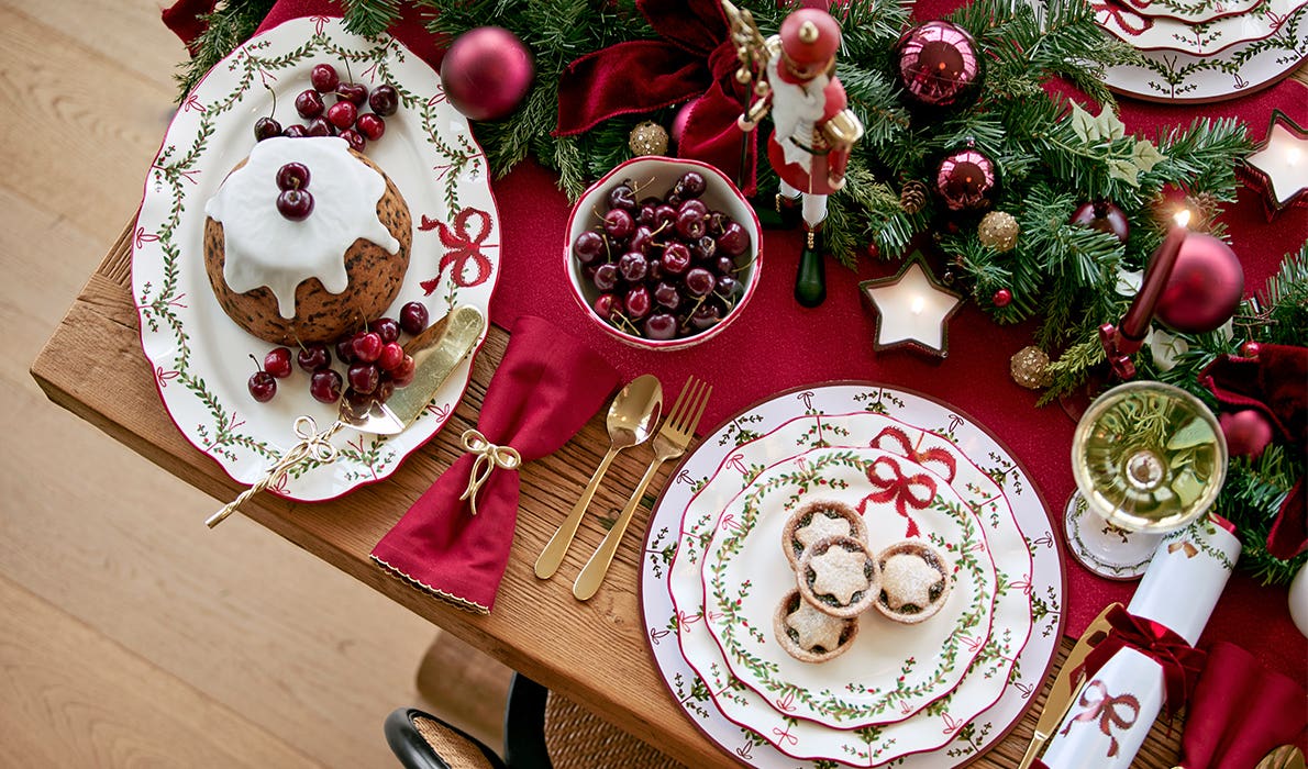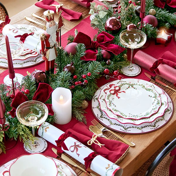 Forever in style, a traditional Christmas table suits every space and celebration. Our Merry collection embraces classic cherry reds paired with festive gold hues for a look that feels wonderfully timeless.