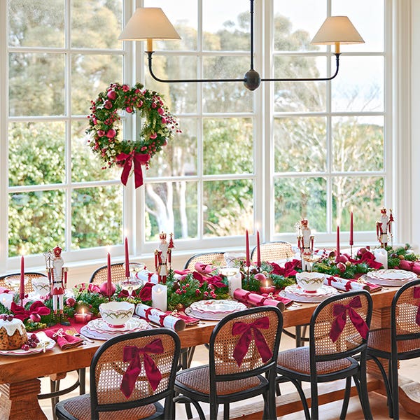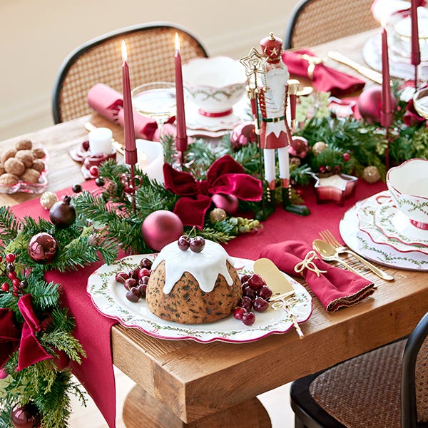 A mixture of nutcrackers, napkins rings, beautiful greenery and sophisticated tea-light holders add a festive touch to the table. Top off a cracking Christmas style with must-have bon bons.