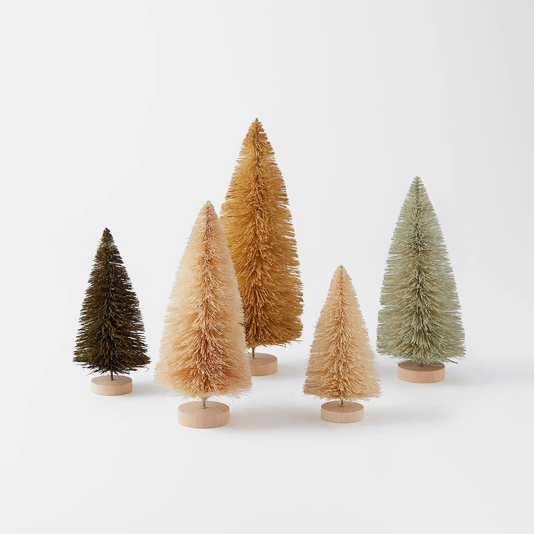 Create a charming woodland scene with this delightful set of five ivory and natural bristle trees, perfect for adding a rustic touch to your Christmas tree. Their varying heights and textures bring warmth and charm to your festive decor.