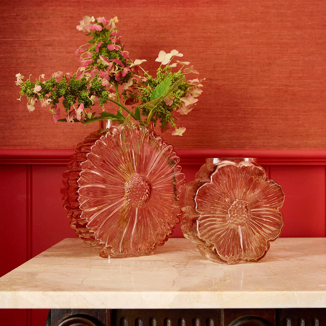 The Daisy Glass Vase in Small offers a warm, earthy look with its daisy design and soft brown glass. Its compact size makes it perfect for small arrangements while still adding decorative charm. A lovely accent piece for consoles, bedside tables, or layered styling.