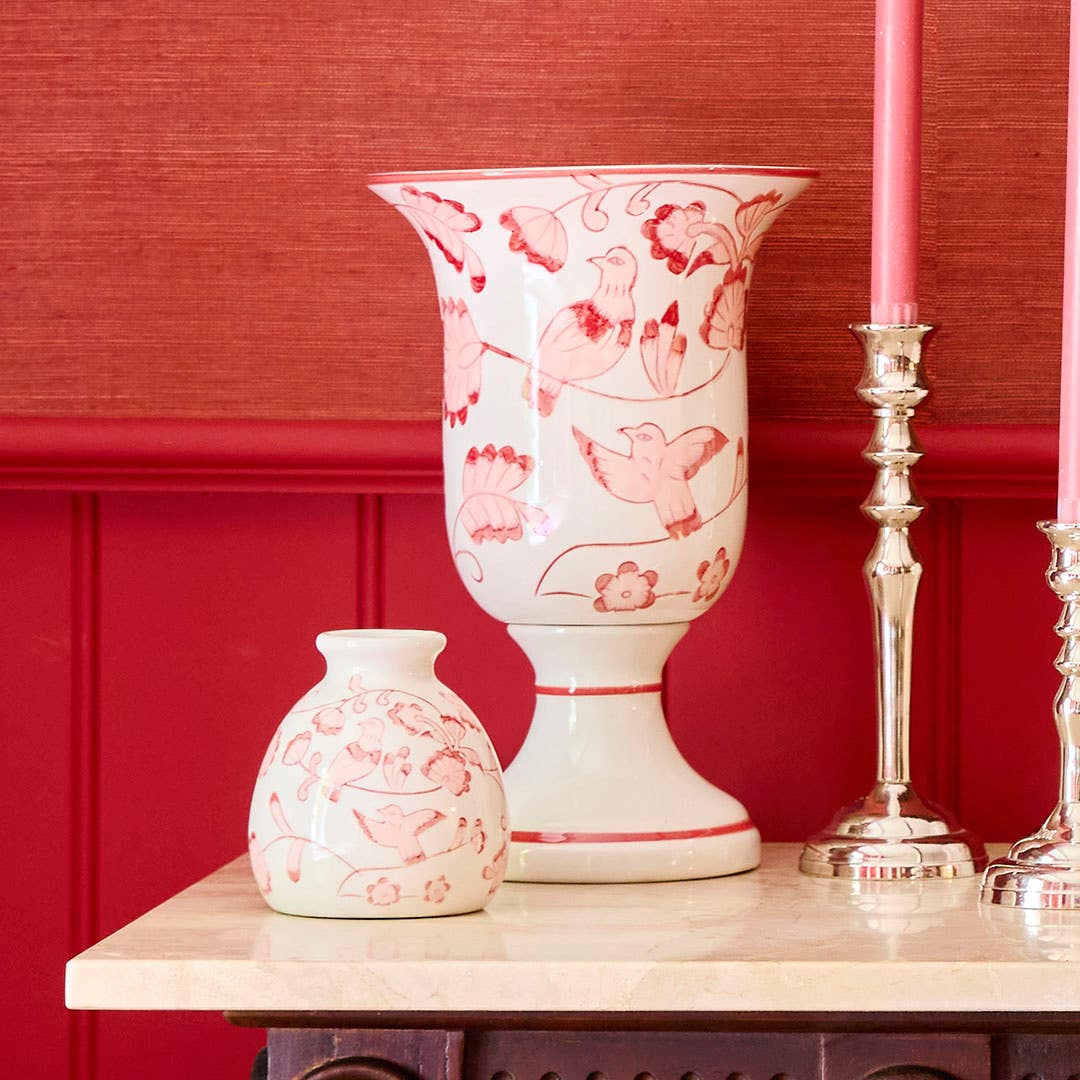 Style your space with the Empress Ceramic Vase in Small. Showcasing a soft pink botanical and bird design, this ceramic vase is finished with a smooth glazed surface that enhances its intricate detailing. A perfect piece for introducing a subtle decorative accent with a refined touch.